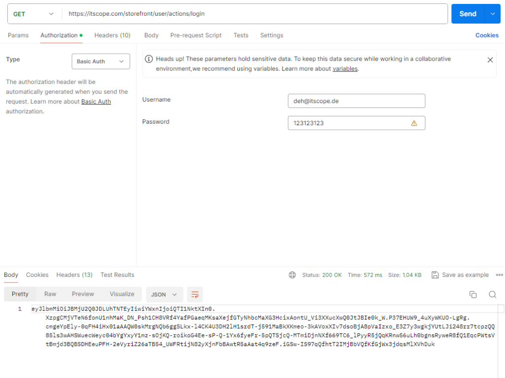 Die Storefront API unterstützt verschiedene Login-Verfahren: Benutzername und Passwort, SSO, Punchout etc. Allen Verfahren ist gemein, dass am Ende des Anmeldeprozesses ein Refresh-Token übergeben wird. Mit diesem Refresh-Token kann über den Endpunkt