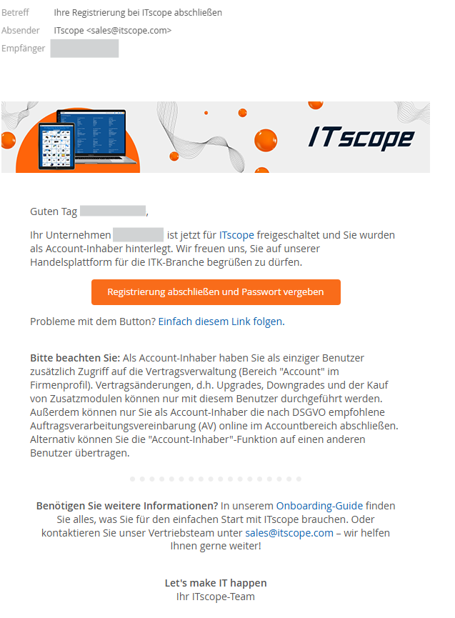 Schritt 1: E-Mail „Ihre Registrierung bei ITscope abschließen“ öffnen